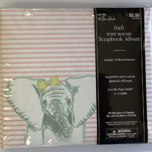 The Paper Studio PB PINK STRIPE ELEPHANT 6″X6″ Post Bound Scrapbook Album
