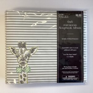 The Paper Studio PB GRAY STRIPE GIRAFFE 6″X6″ Post Bound Scrapbook Album
