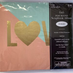 The Paper Studio MINT CORAL GOLD FOIL LOVE 6″X6″ Post Bound Scrapbook Album