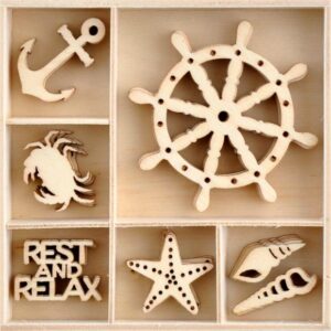 Kaisercraft UNCHARTED WATERS Wooden Flourish Pack 35pc