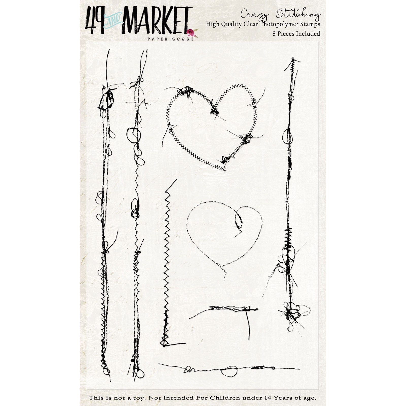 49 and Market CRAZY STITCHING Clear Acrylic Stamp Set 8pc