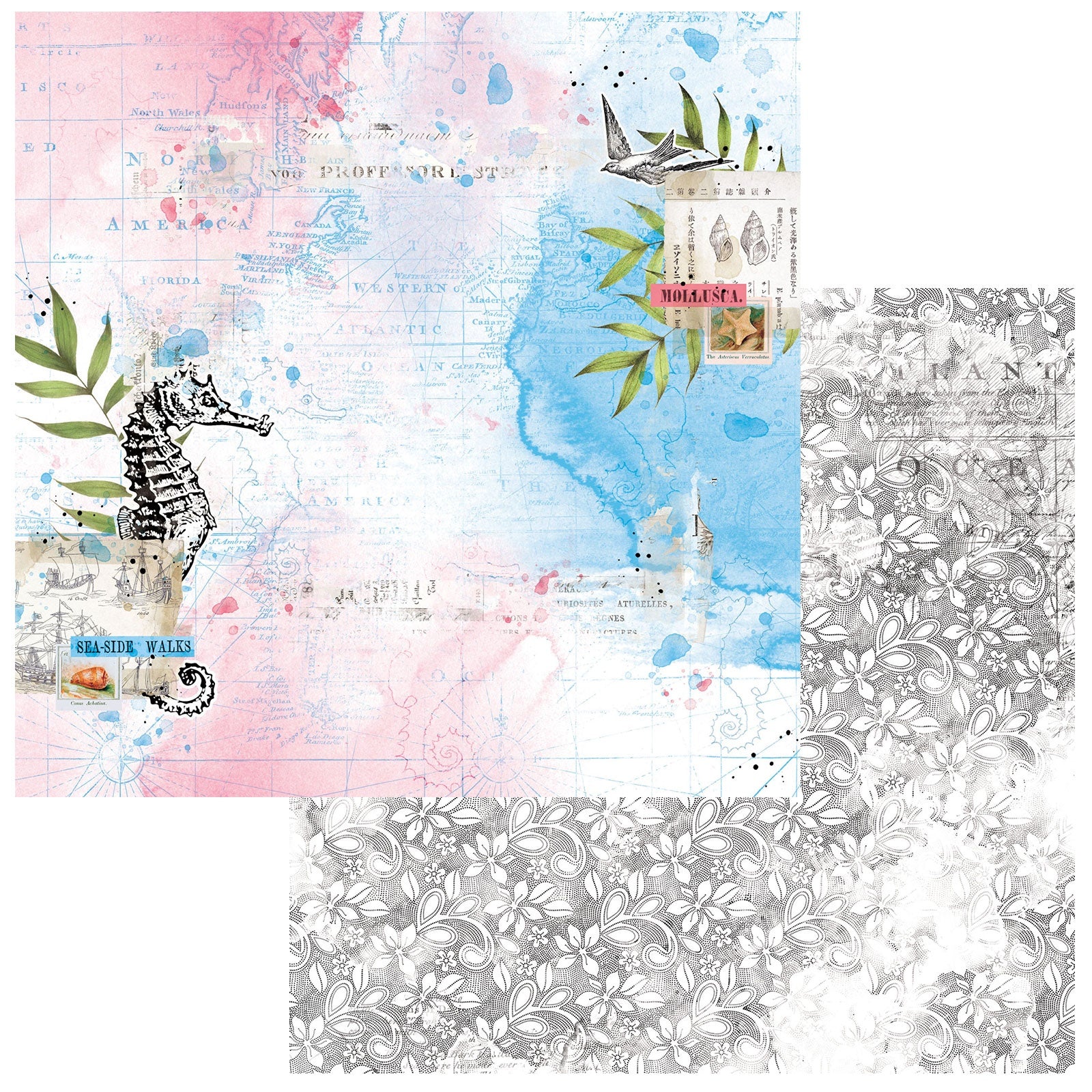 This is beautiful double-sided heavy cardstock scrapbook or mixed media paper.