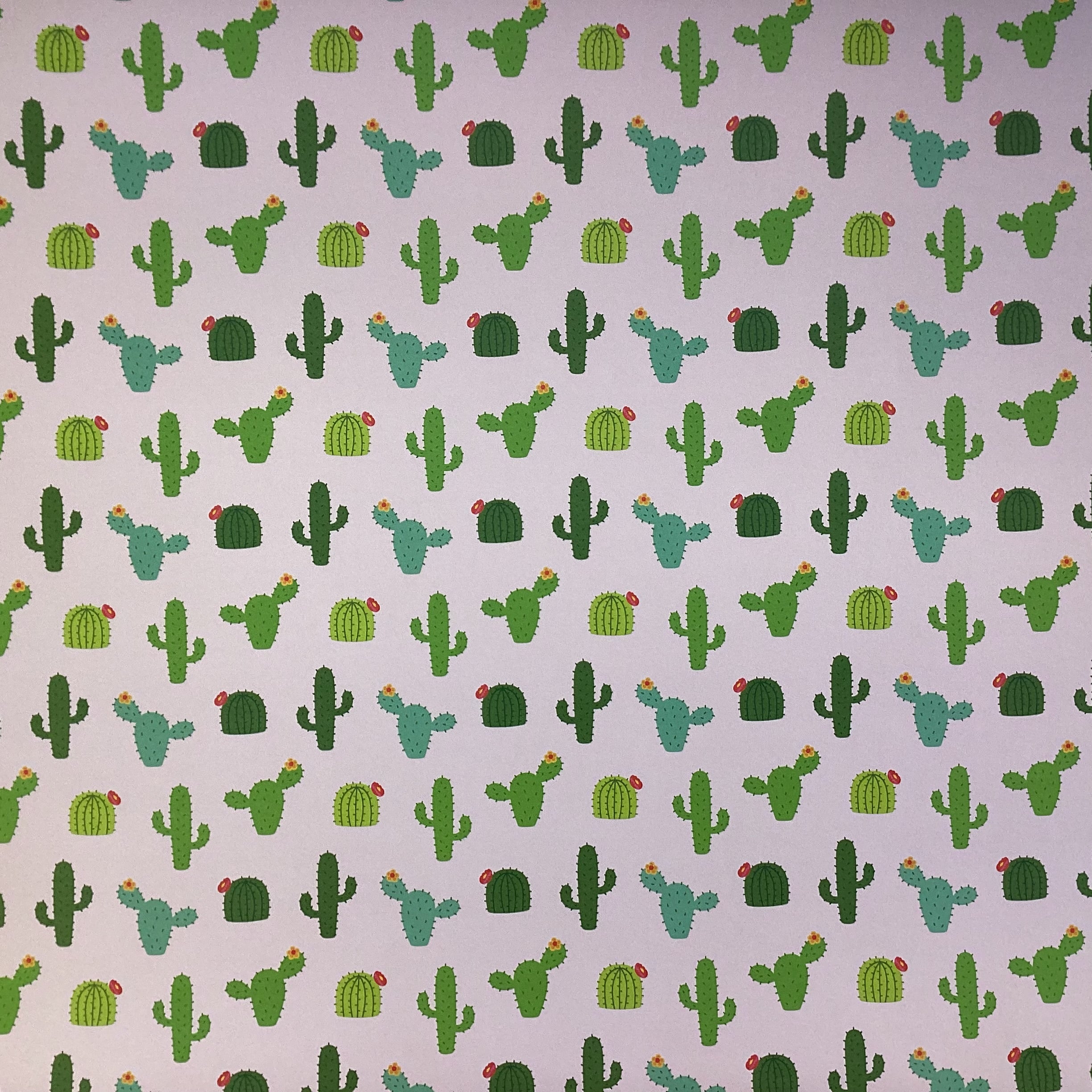 The front of this paper has a pattern of cacti on a pink background.