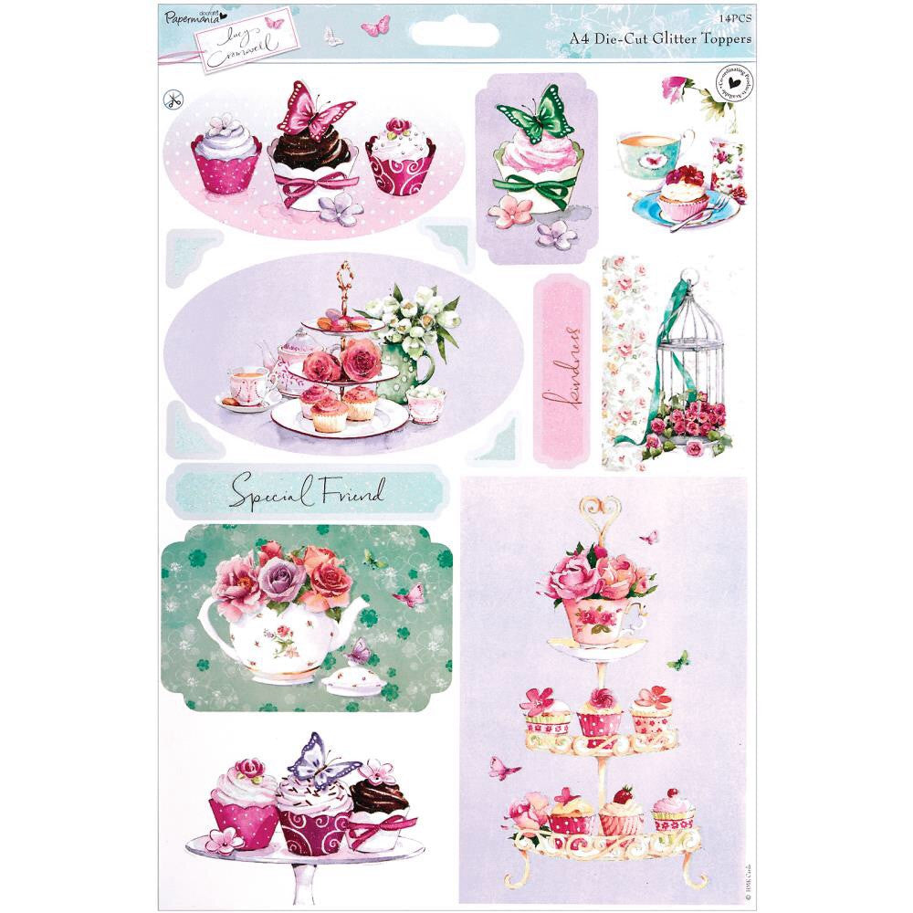 Docrafts Papermania TEA Glitter Die-Cut Toppers 14pc