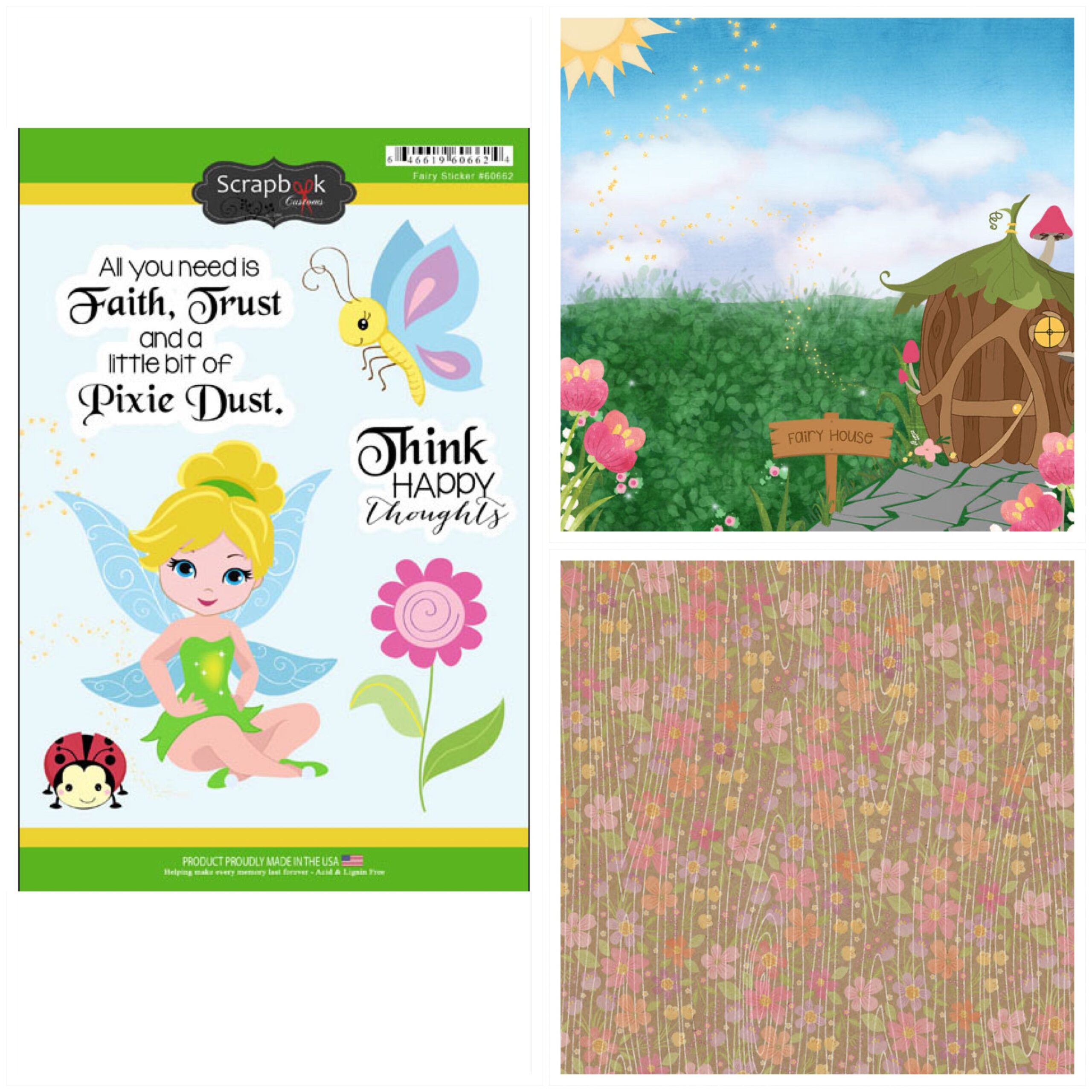 FAIRY HOUSE Tinkerbell 12”X12” Scrapbook Kit Princess Disney 3pc