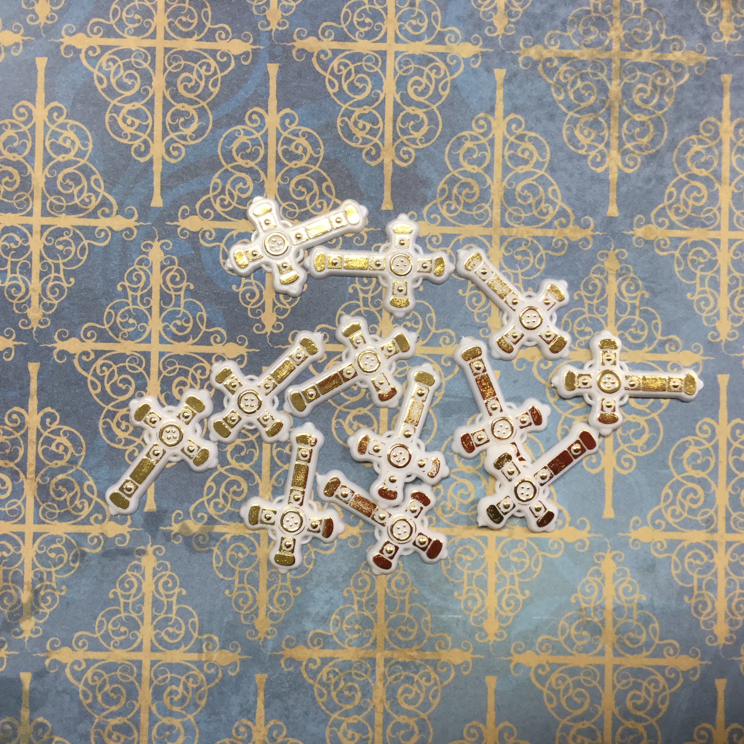 Gold & White Rhinestone Religious CROSS Embellishments