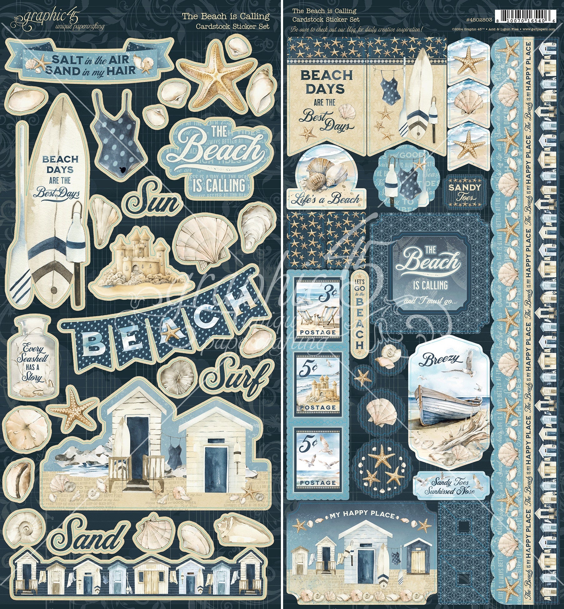 Whether you’re creating cards, scrapbook pages, tags, journals, or planners, these stickers will transport you to the shore and bring your projects to life. Embrace the call of the beach and let your creativity soar with Graphic 45.