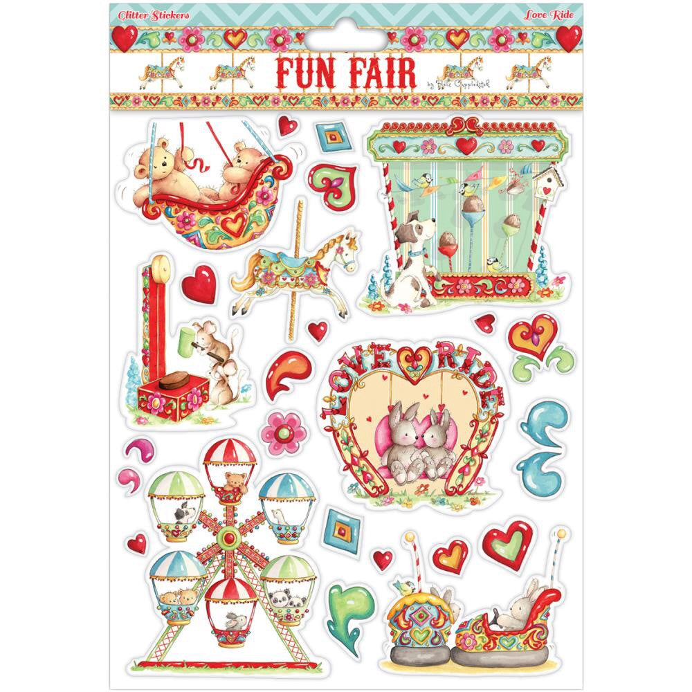 Trimcraft-Helz Fun Fair Glitter Stickers A4: Love Ride.