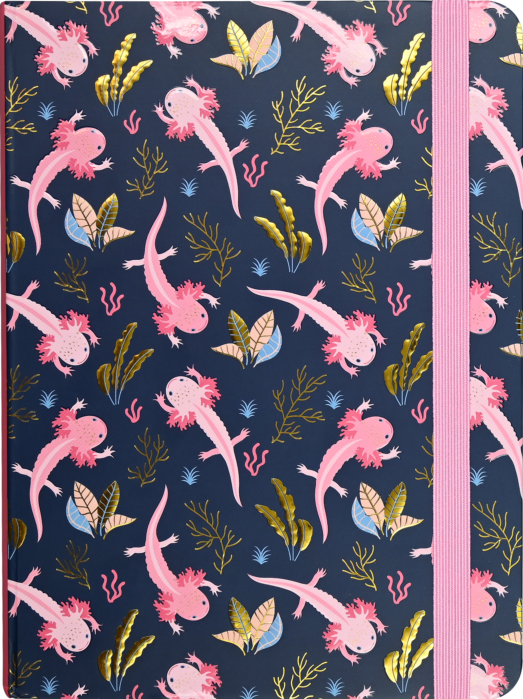 Write your way into a world of whimsy within the pages of this axolotl-adorned journal! Smiling salamander cover design is embossed and embellished with gold foil accents and gloss highlights.