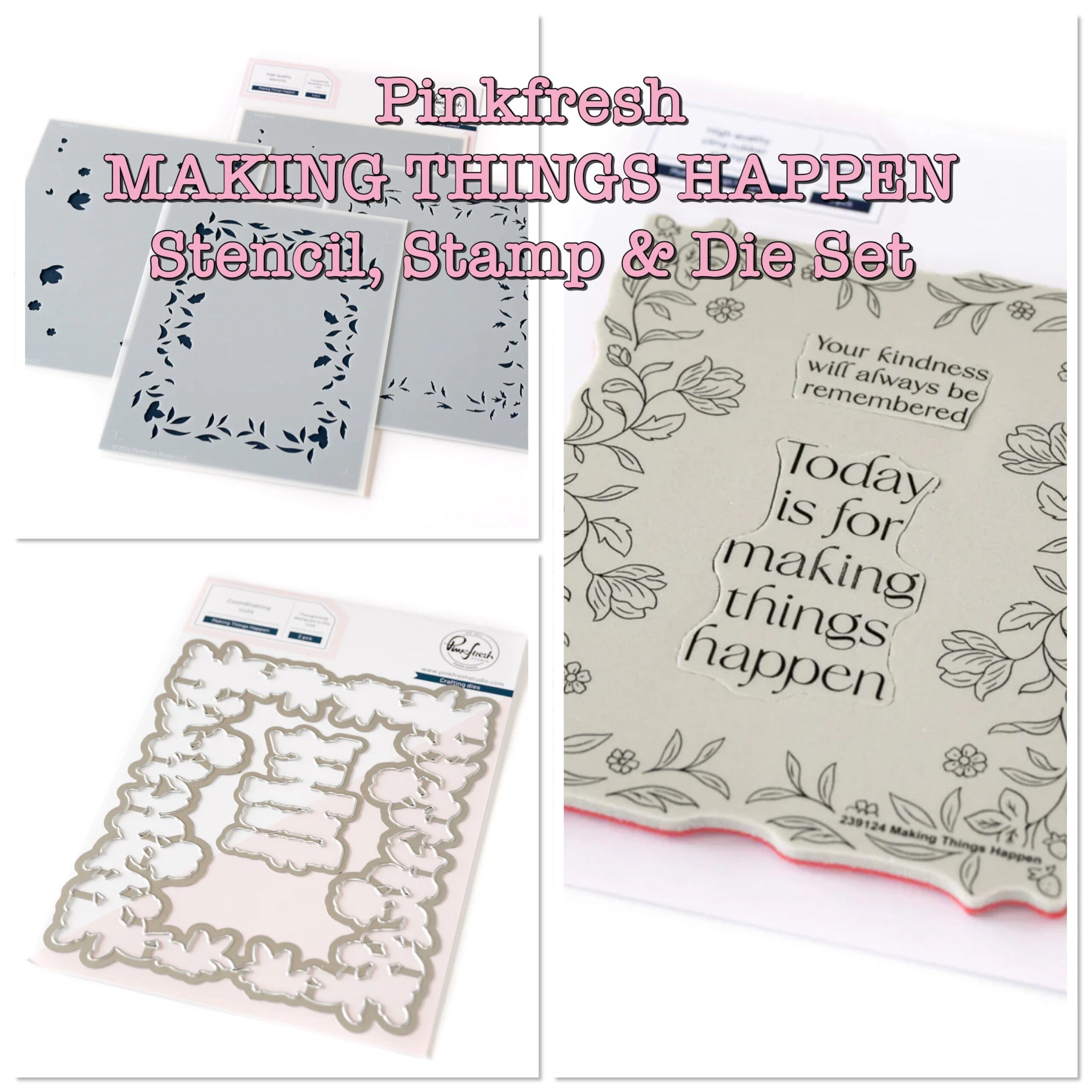 Pinkfresh Studio MAKING THINGS HAPPEN Stamp Stencel & Die Set 9pc