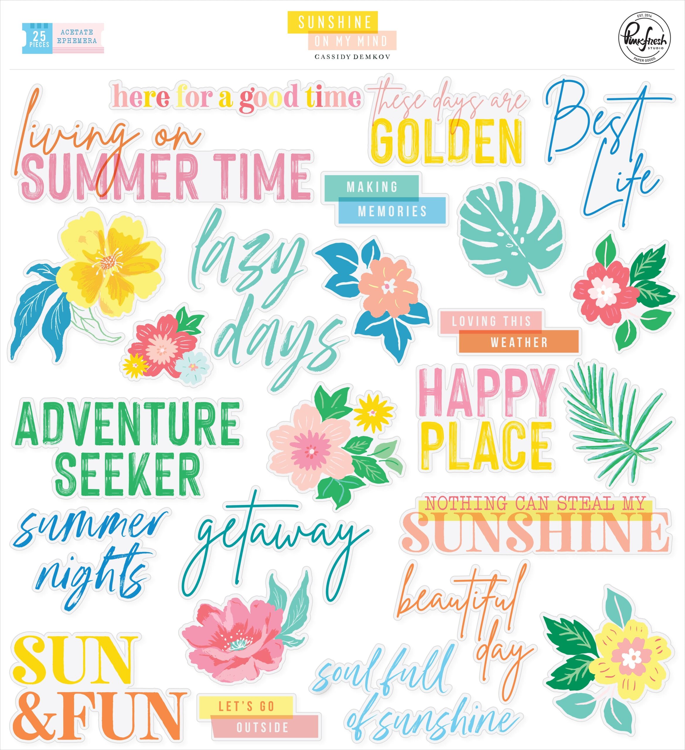 Pinkfresh Studio Sunshine On My Mind ACETATE EPHEMERA 25pc Titles