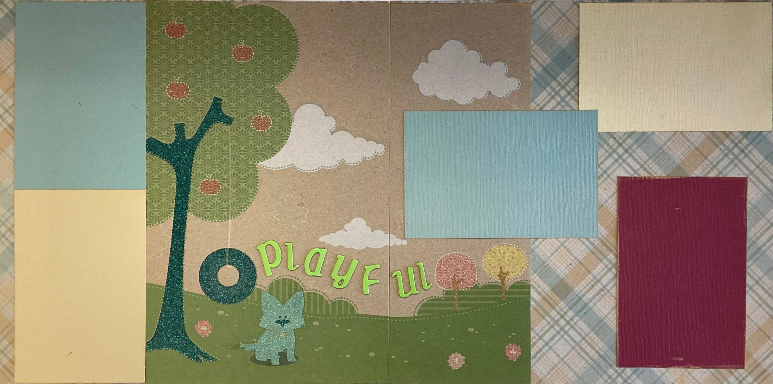 Premade PLAYFUL DOG (2) 12”X12” Scrapbook Pages