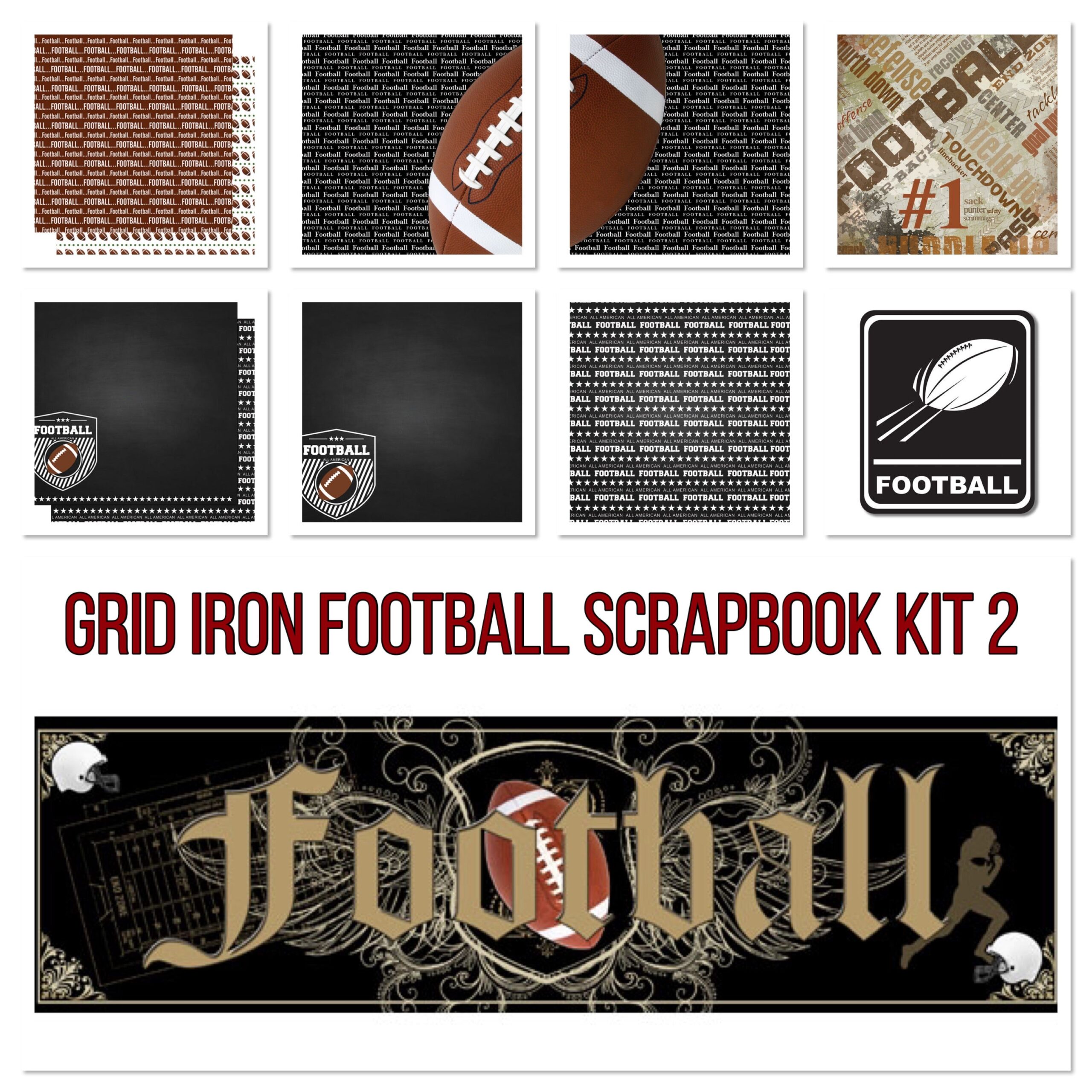 Scrapbook Customs GRID IRON FOOTBALL 2 12″X12″ Scrapbook Kit