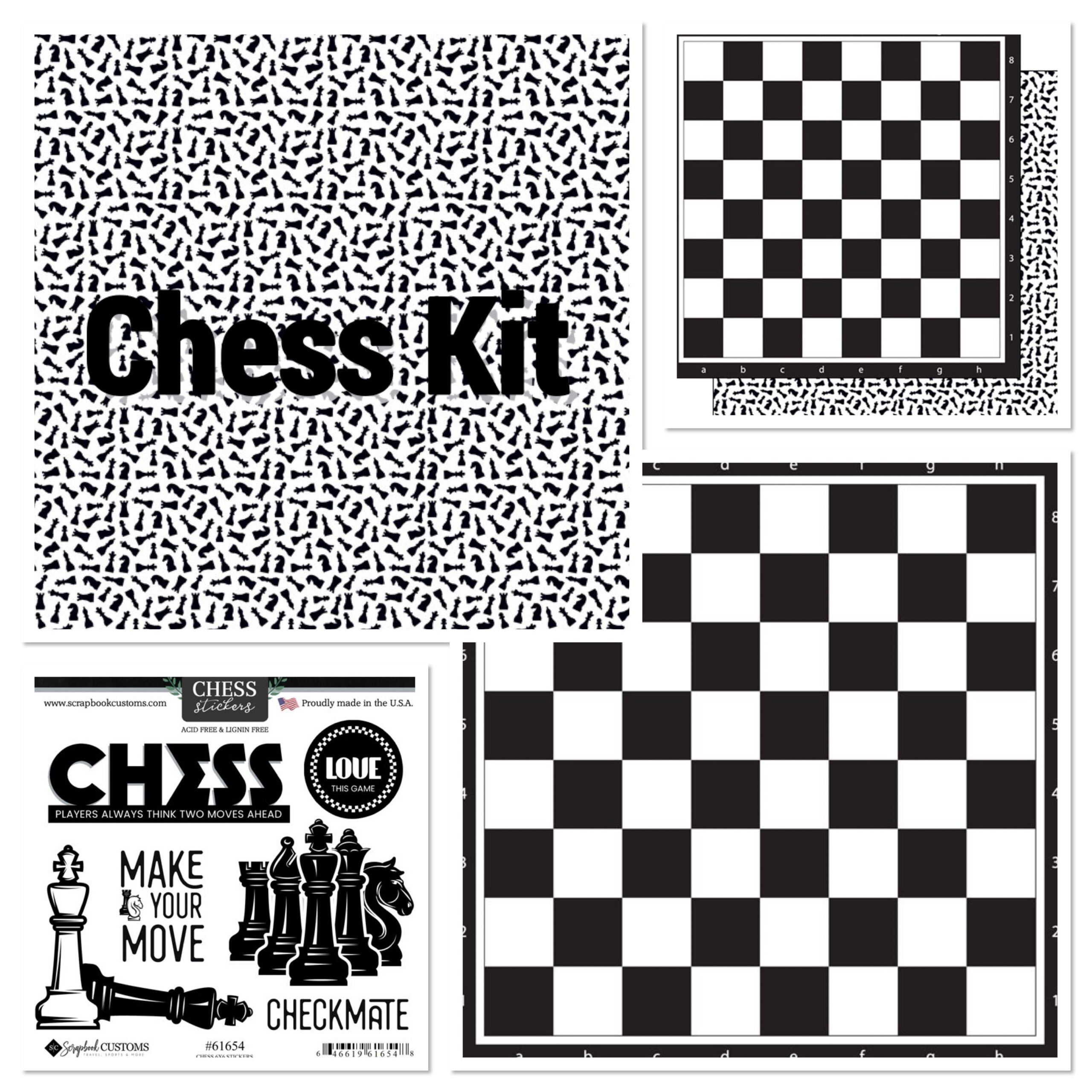 Scrapbooksrus CHESS KIT 12″x12″ Scrapbook Paper Stickers 3pc