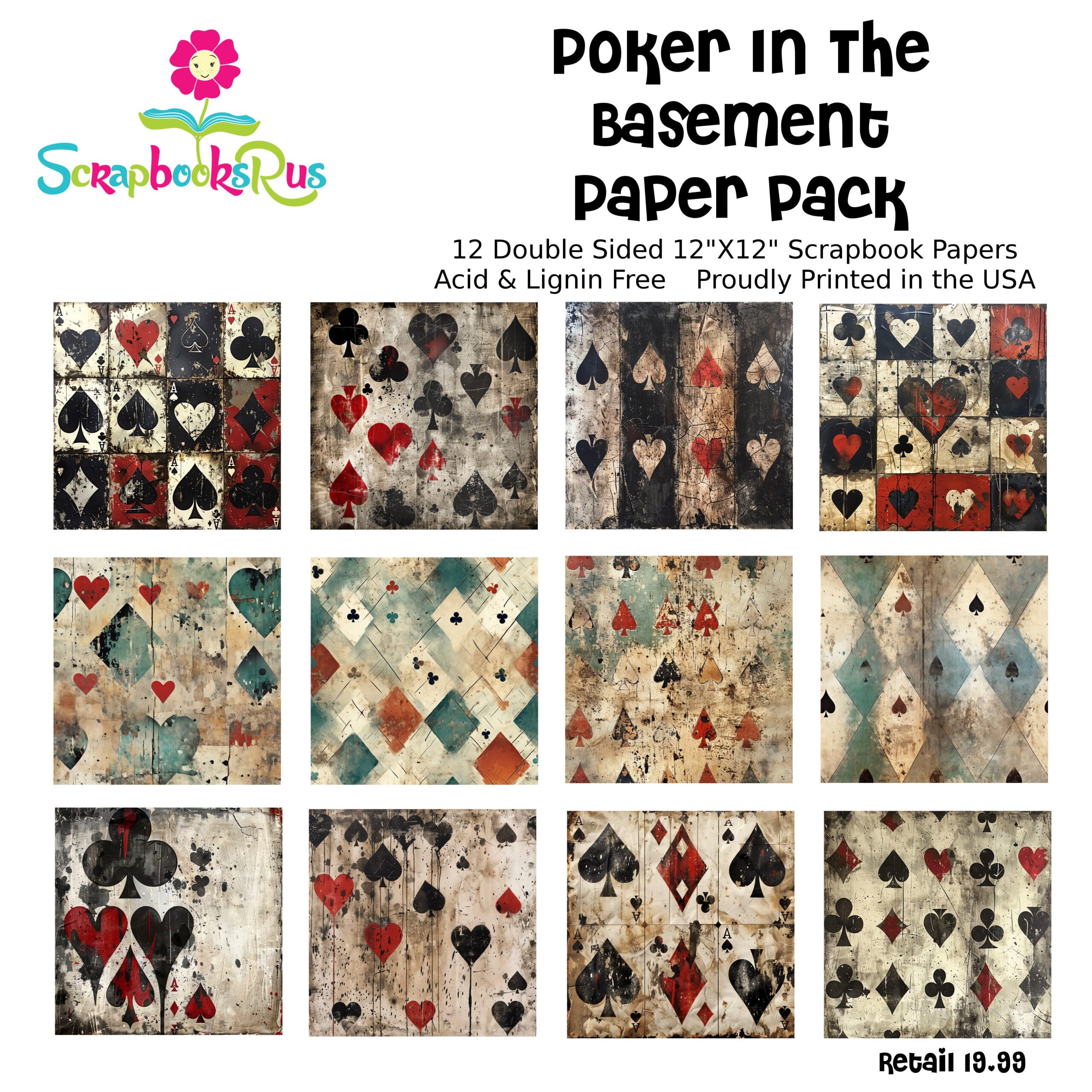 Scrapbooksrus POKER IN THE BASEMENT PACK 12pc 12″X12″ Scrapbook Paper