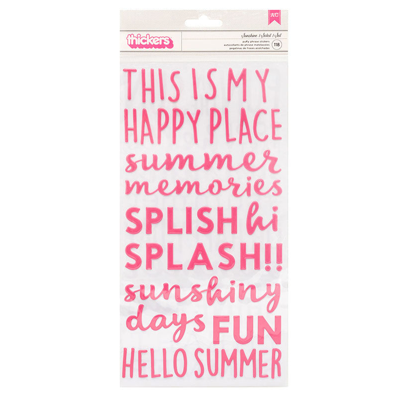 Thickers Pebbles Fun in the Sun SUNSHINE Puffy Phrase Stickers 118pc
